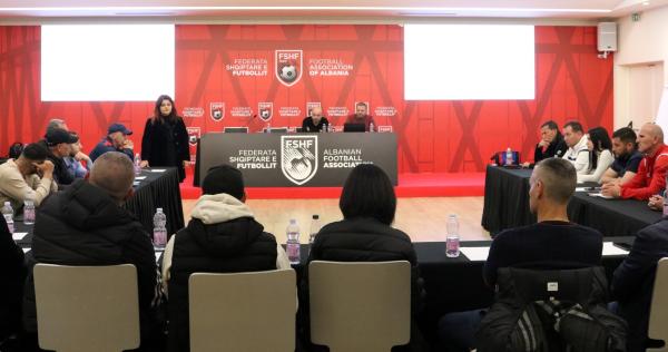 During the training session held at the next stop in Tirana, at the premises of the Football House, representatives from various departments of the AFL who work with children's football, as well as representatives from the championship clubs "Abissnet Superior" and football academies in Tirana, participated.